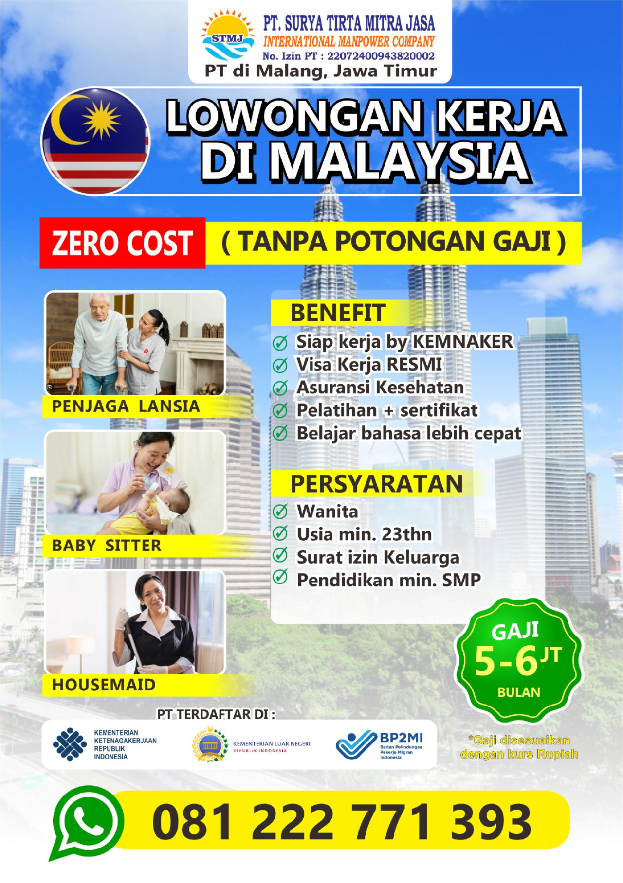 - Pendidikan min. SMP